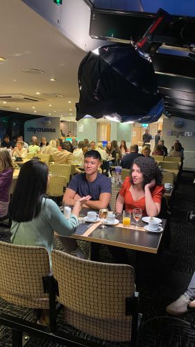 The solution of how to work around a busy dining service came from lots of rigorous planning and a tight schedule. We had actors and models hopping on and off the boat at specific times all along the Thames, sometimes having only ten minutes to capture the perfect shot without real customers in the background.